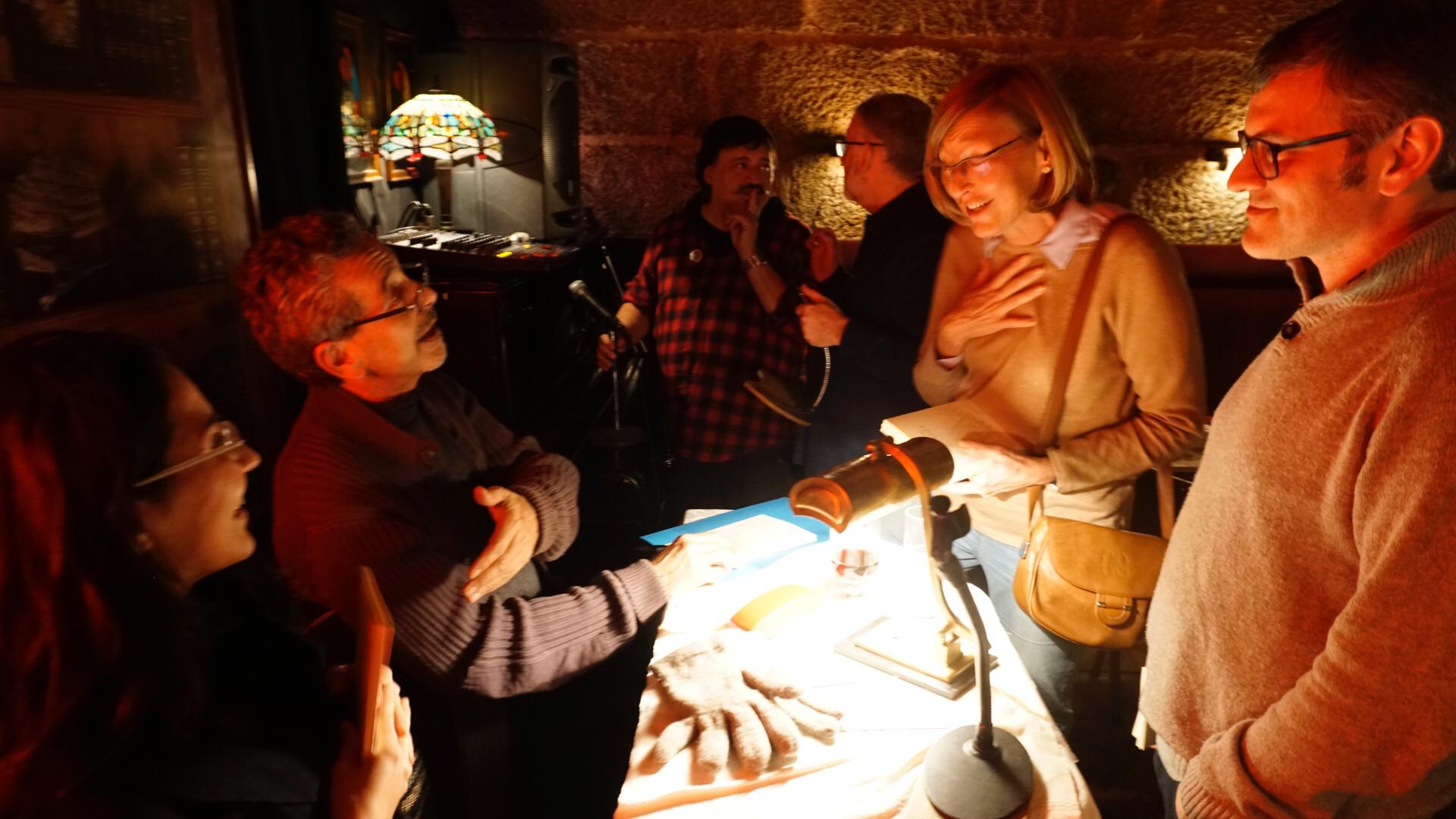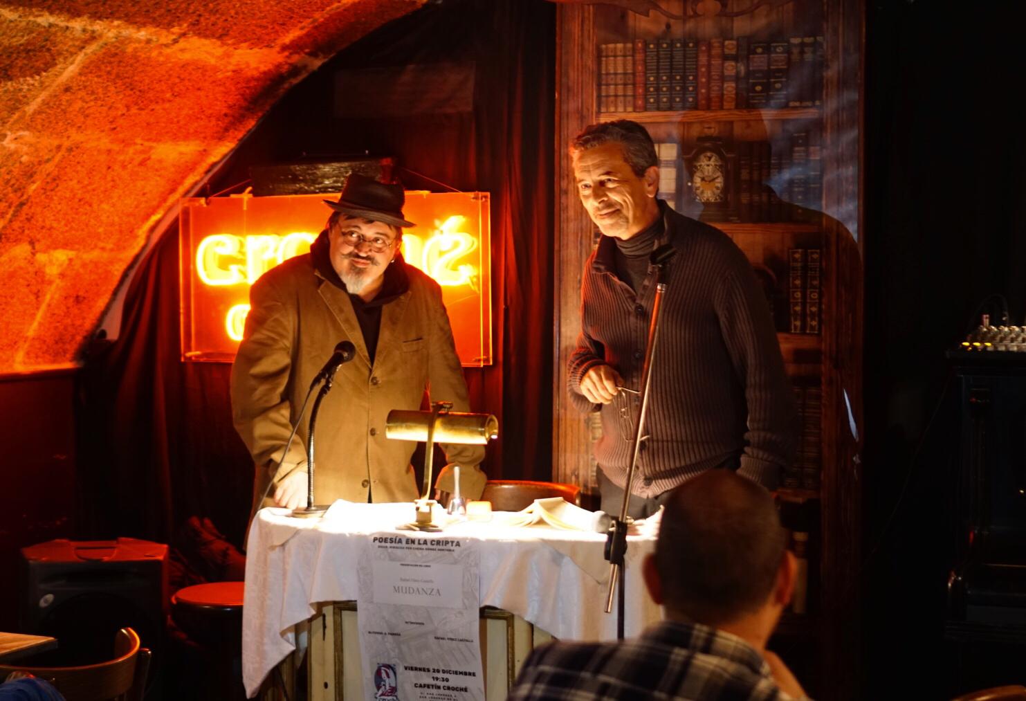 Yo recogí a José Hierro en su casa y antes de tomar un taxi, Hierro me preguntó si había algún bar cerca del lugar de lectura. Le contesté que no y nos metimos en uno que había en su calle para calentar el espíritu.